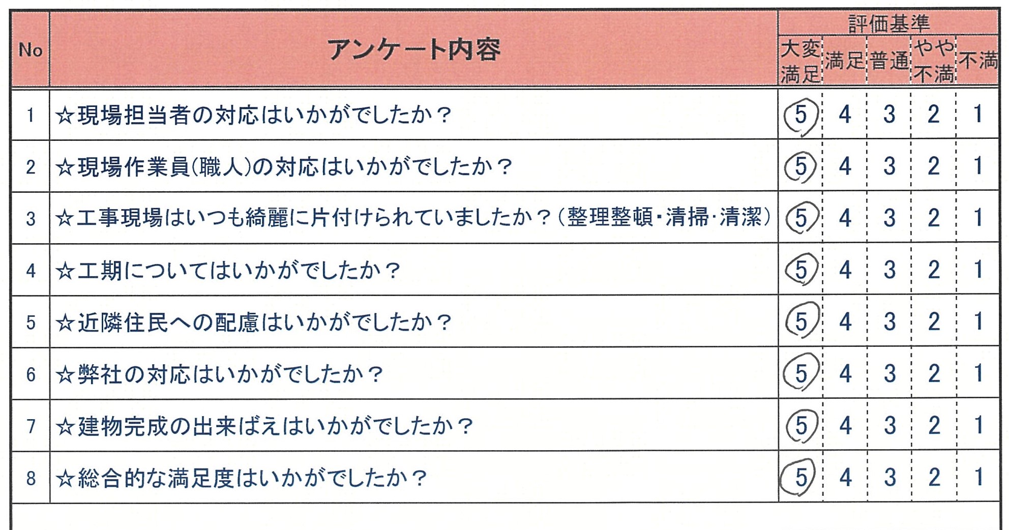 お客様アンケート QUESTIONARY