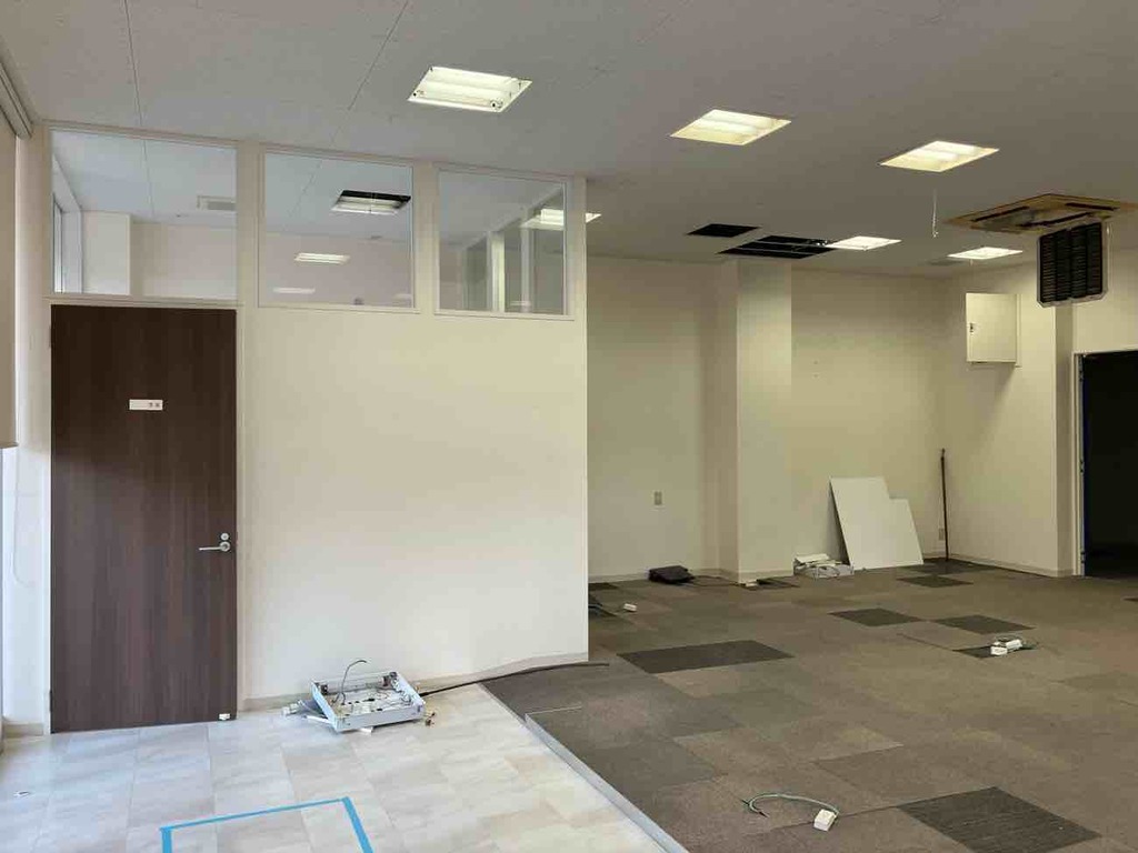 既設施設・店舗を不動産事務所へリノベーション。事務所として使う部分にはOAフロアーを再利用、開口部を増やし明るい事務所へ生まれ変わりました。